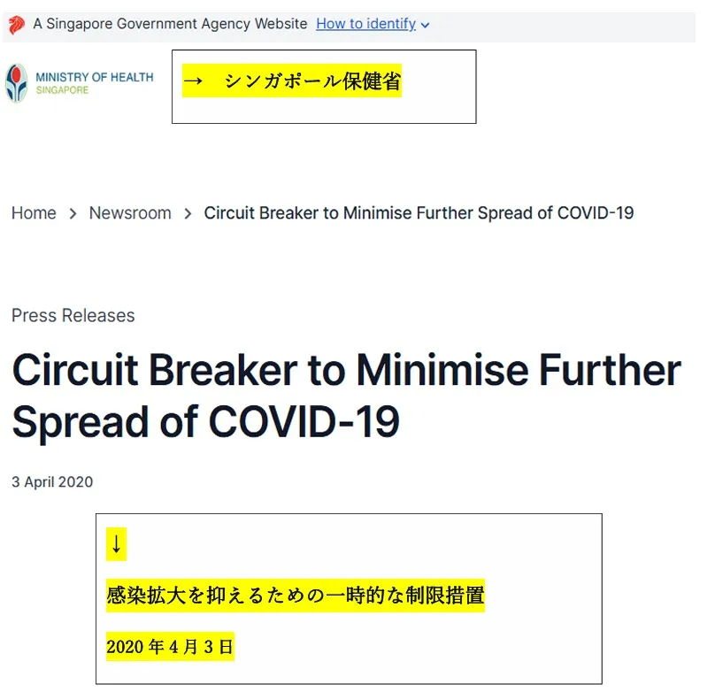 シンガポール政府による外出制限に関する通知